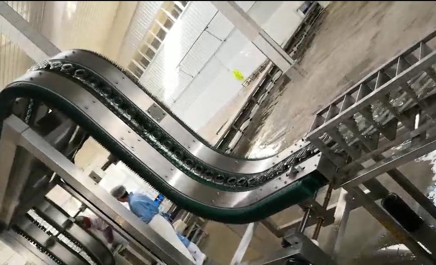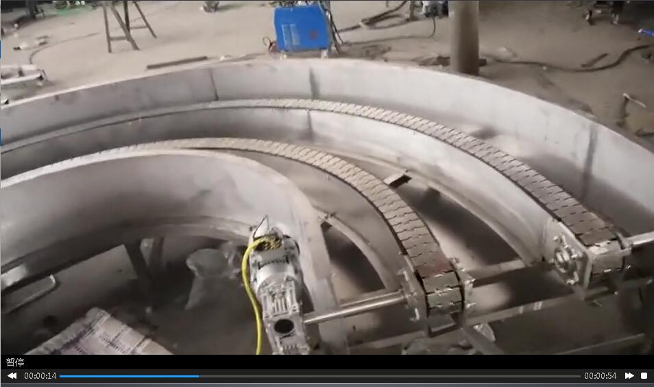 轉(zhuǎn)彎鏈板輸送機(jī)運(yùn)行